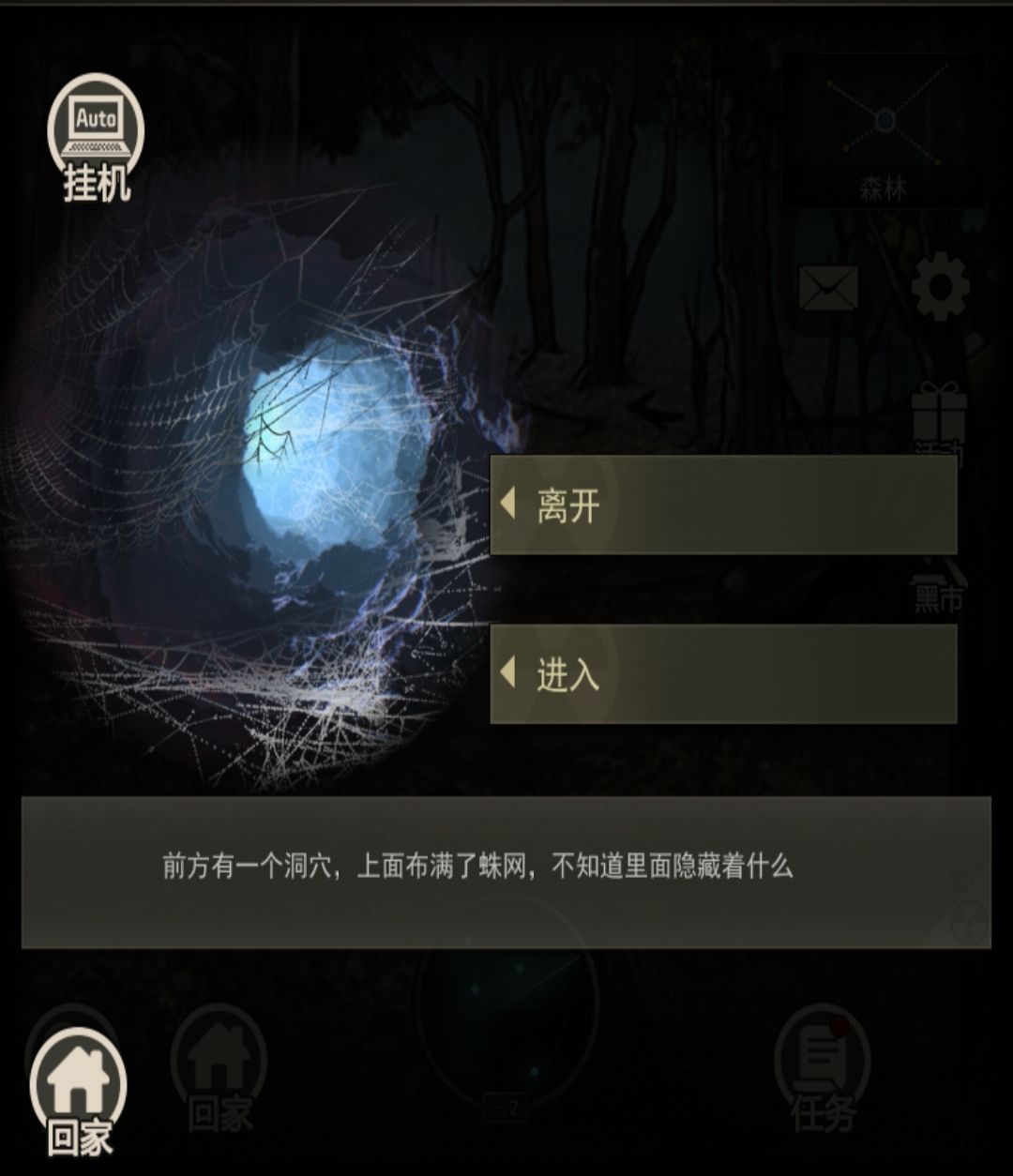 然后去图三的森林搜索蜘蛛洞(主线任务过了农场居民区路牌即可解锁森林)