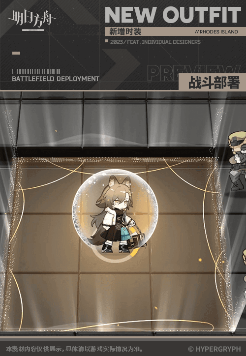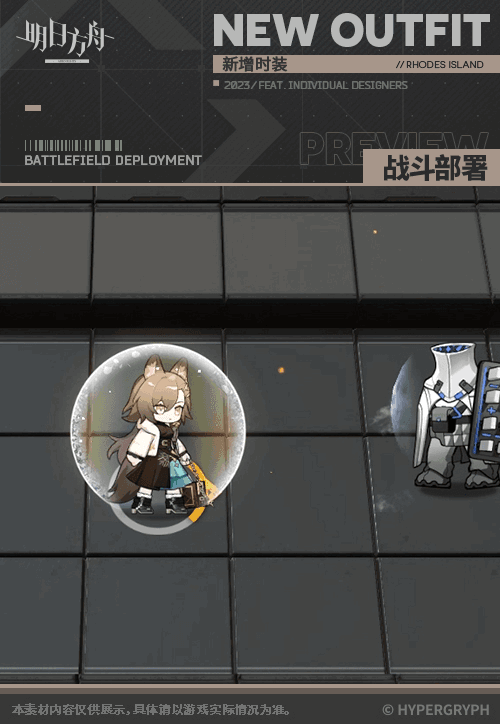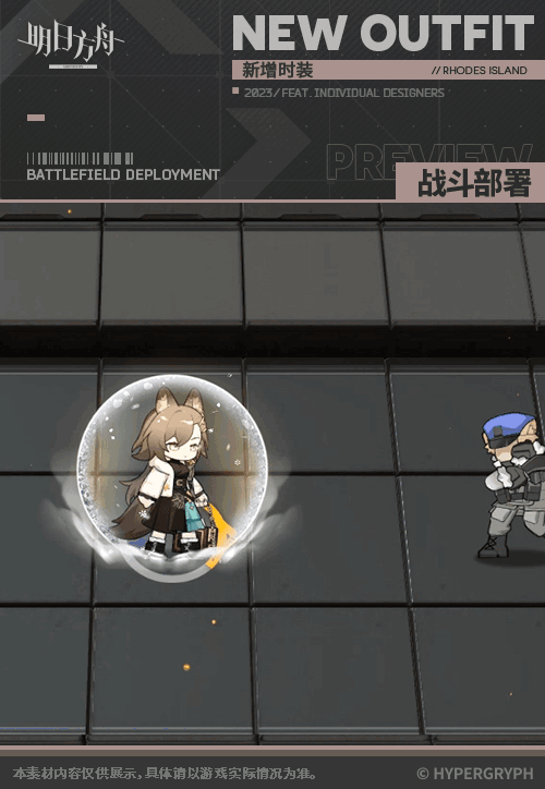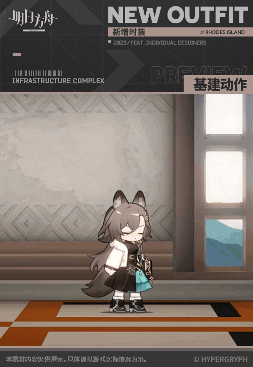 这次的立绘还是很精细的,除了圣诞树造型的布景与信笺的以外,斥罪小姐的衣装也别有新意,斥罪小姐从出场到现在的形象始终是黑灰色,周身布满扎眼的荆棘,总是严肃的神情,始终身处雨水冰冷中的氛围。虽然这次的皮肤依旧是无色系,但白色的外套对比以前素板的黑要柔和许多,而且裙摆间则增添了一模清新的水绿色。考虑到她珍视的信笺,这抹点缀上的颜色是否象征斥罪小姐与以往相比,得到了一丝暖意?那阴雨连绵的叙拉古又是否迎来了一丝春意?
