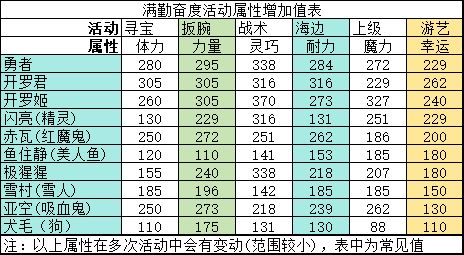 1、不同职业的活动收益不一,最优的职业是勇士和开罗君/姬,具体活动收益见图3。