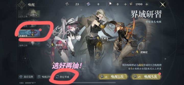 关于抽卡:抽卡前最好明确玩哪个界域,记得切换界域在抽!!(我测试期傻傻的一直默认抽混沌)