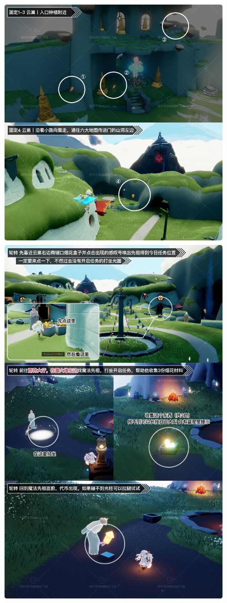 《光遇》游戏中每天的每日任务及大蜡烛的位置都不相同,玩家完成每日任务及收集大蜡烛都可以得到丰厚的兑换奖励,奖励可以用于兑换各种动作及道具,不过很多小伙伴不知道每日任务怎么做,又懒得自己去找大蜡烛的位置,我们汇总了每日任务的完成攻略以及蜡烛位置,一起来看看吧!