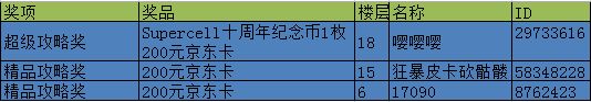超级攻略奖:200元京东卡1张+Supercell十周年纪念币1枚