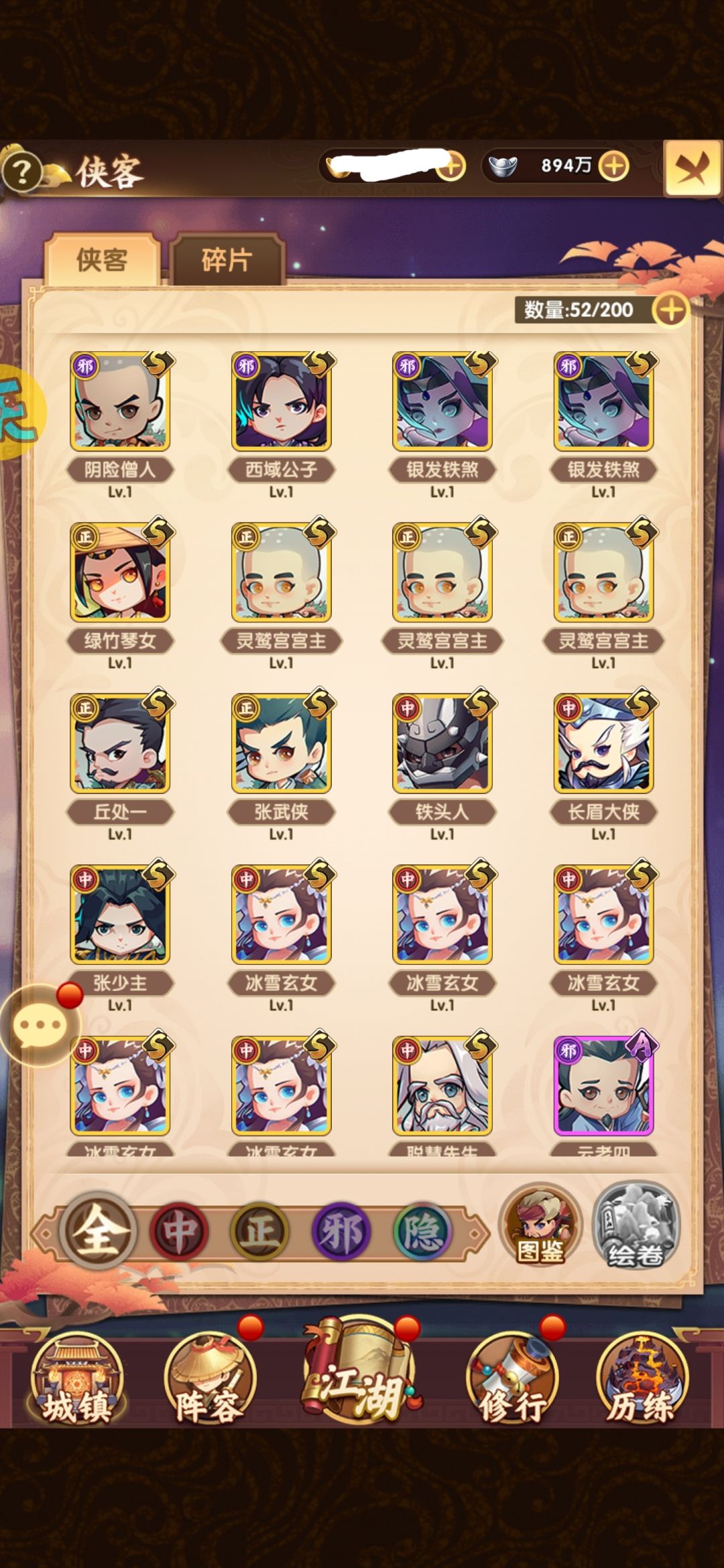 (ps:如果想有个开局好一点的就刷初始,用小号Q加客服拿50抽,加上签到那些能凑70抽,如果抽到乔峰,襄阳城主,潇洒剑客,丁老怪,玄女开局后面就很好玩)