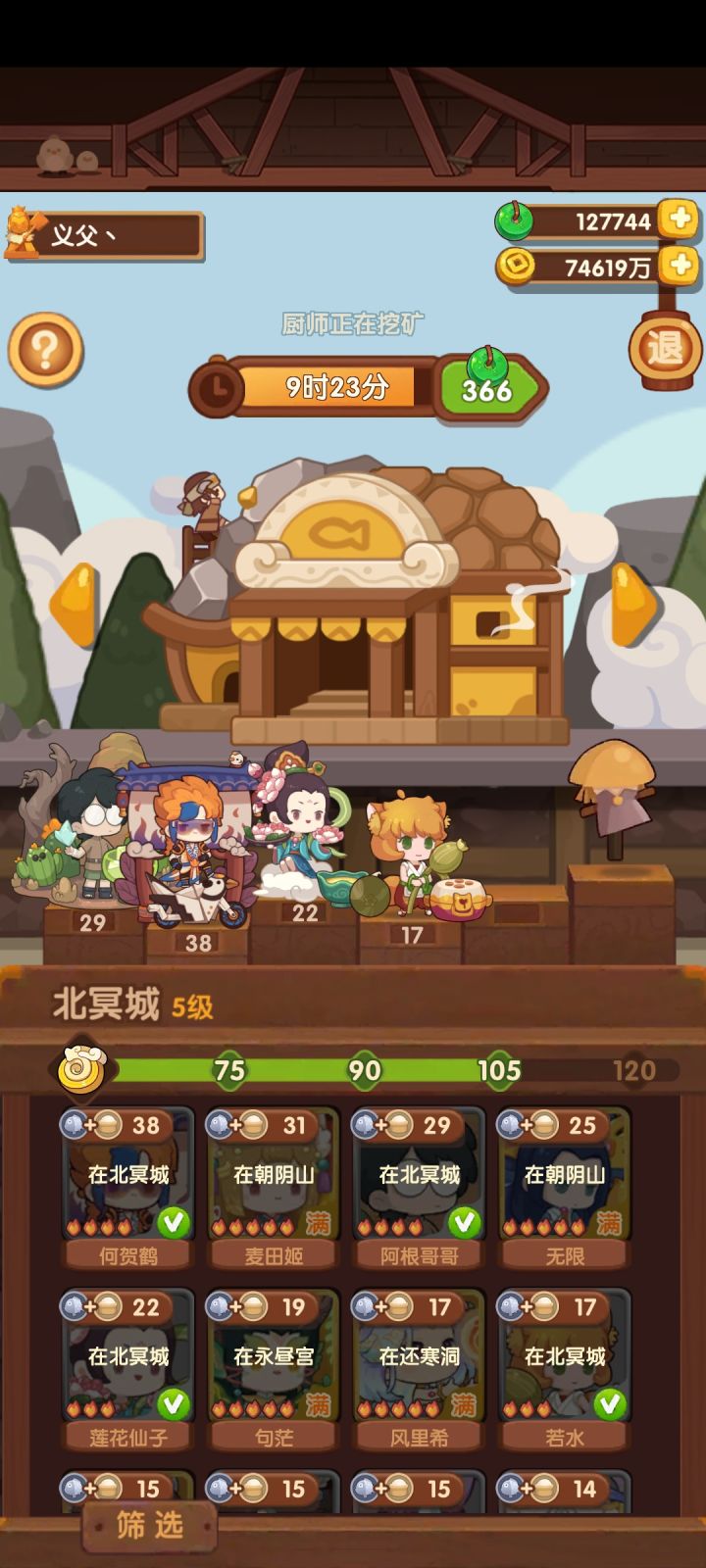 由于肉面几乎无人可用,所以我把肉鱼大c无限派过去救急,以实现6种采集平衡发展。