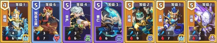 金卡(5级):冷苞,严颜,蔡瑁,吴兰,文聘,刘表