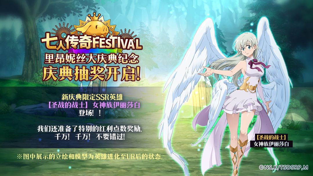 活动介绍:里昂妮丝大庆典限定SSR英雄【圣战的战士】女神族伊丽莎白获取概率限时提升!