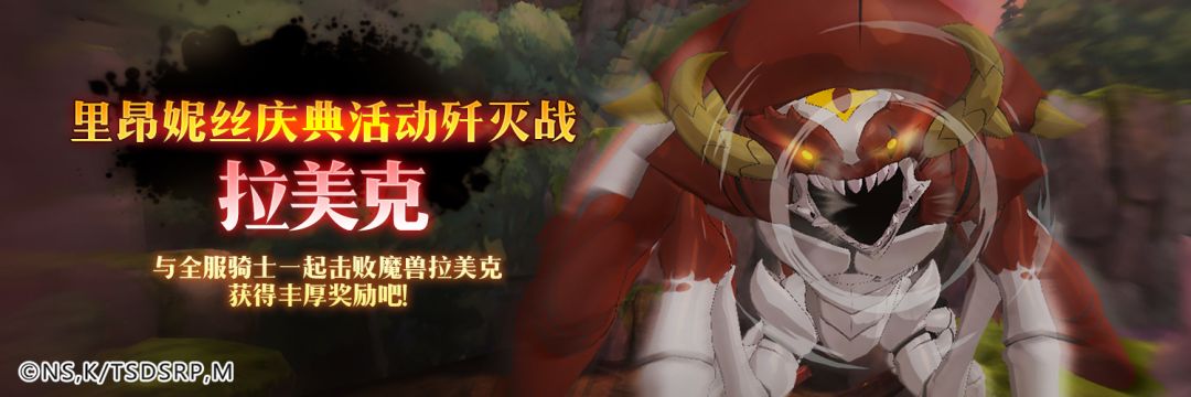 活动介绍:活动期间,与全服骑士一起击败魔兽拉美克,赢得全服钻石大礼。击败魔兽拉美克掉落的外壳碎片,还可以兑换更多奖励哦!