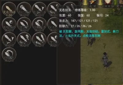 1.修炼武功,可以看武功的伤害,武功修炼到99.99,武功伤害达到最高。(每修炼满一本武功秘籍都可以获得相应的人物属性)