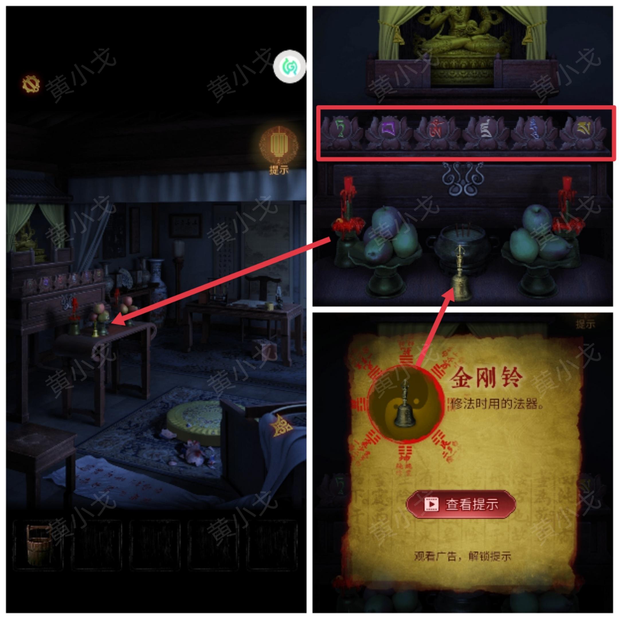 4.点击供桌,获得【金刚铃】(注意看木莲花上的符号及其对应的颜色)