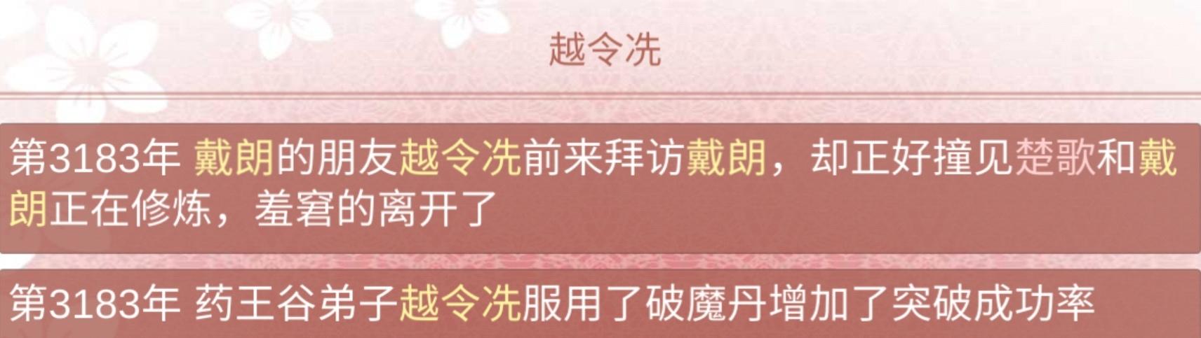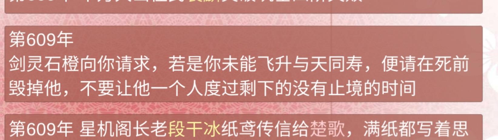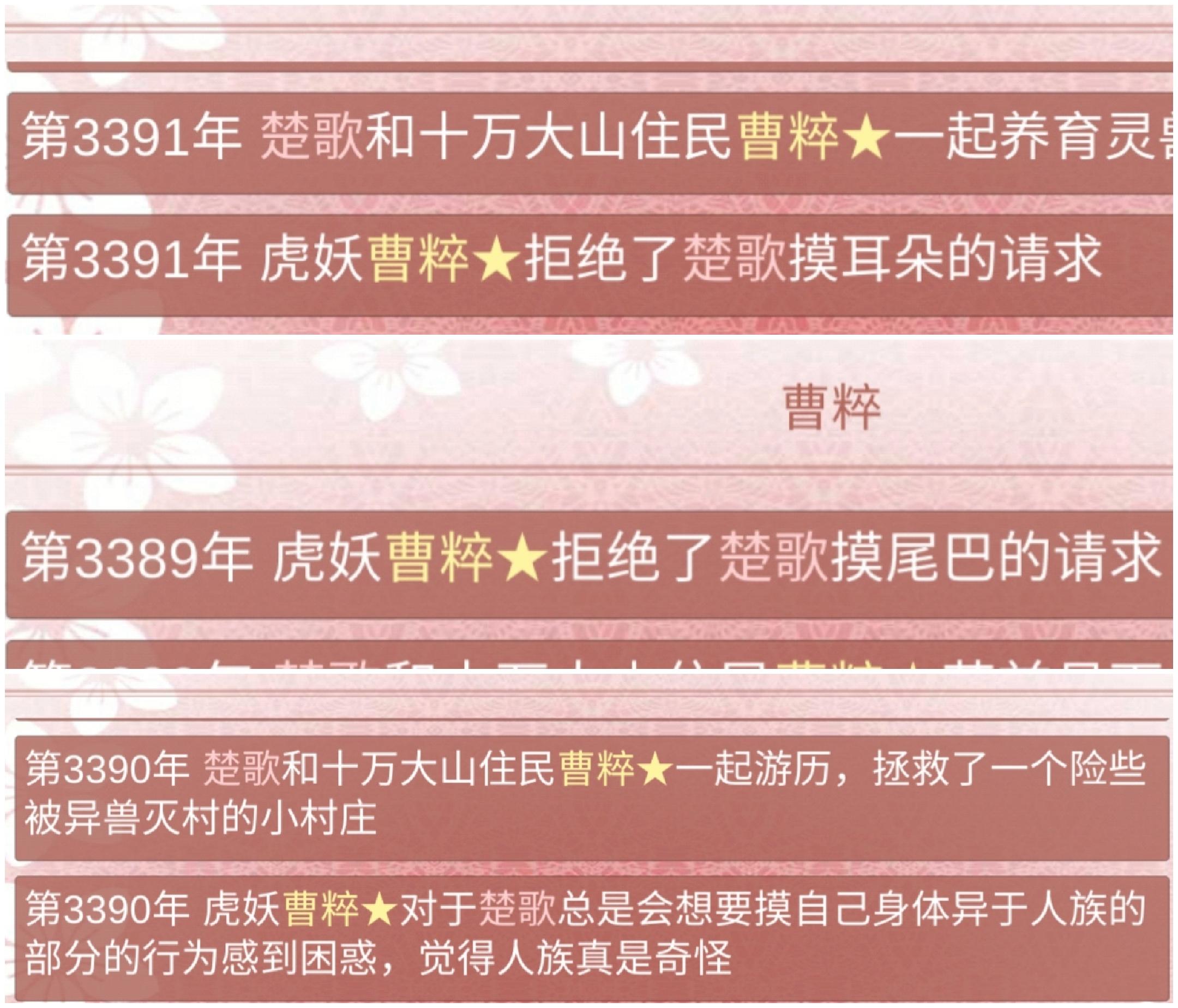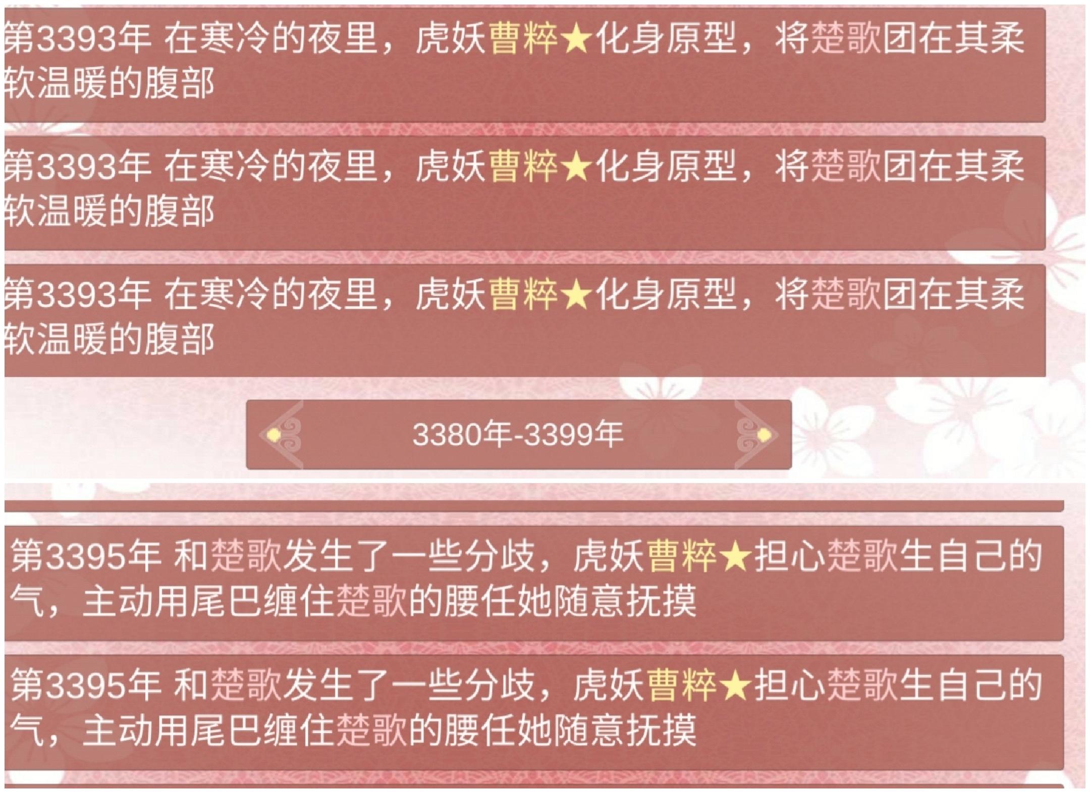 3894年 期间陷入过幻境,也解过情毒(发现掉了境界赶紧喂药提了回去,怕他被攻略之后掉死了)