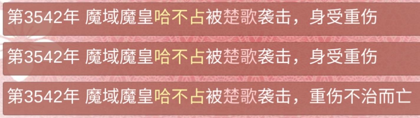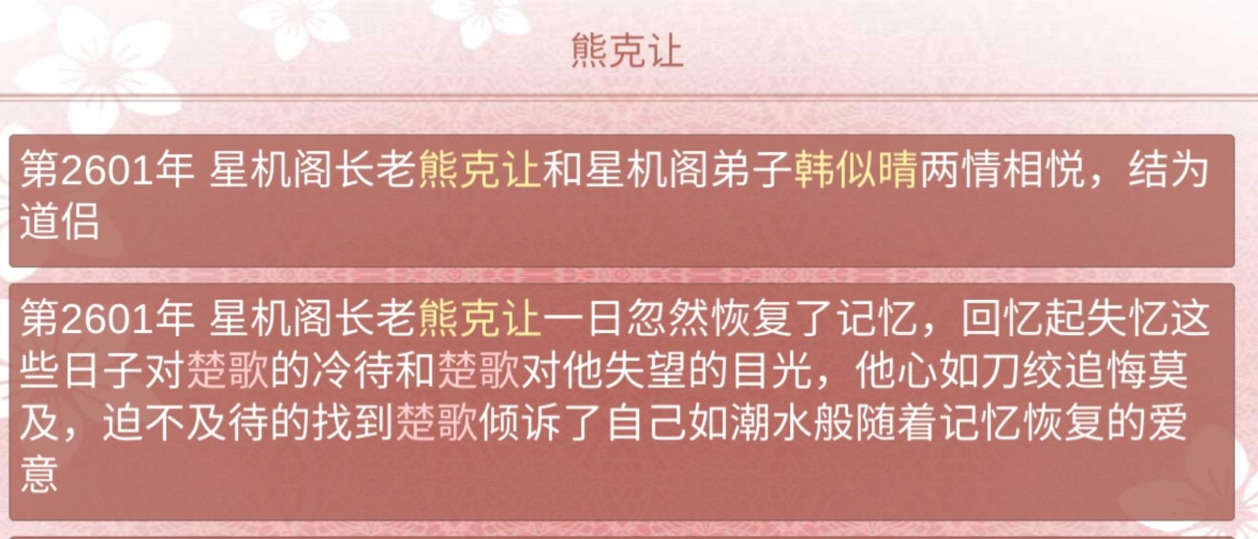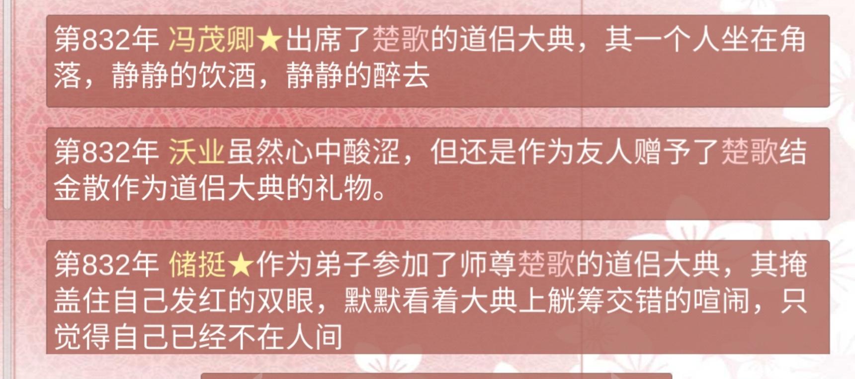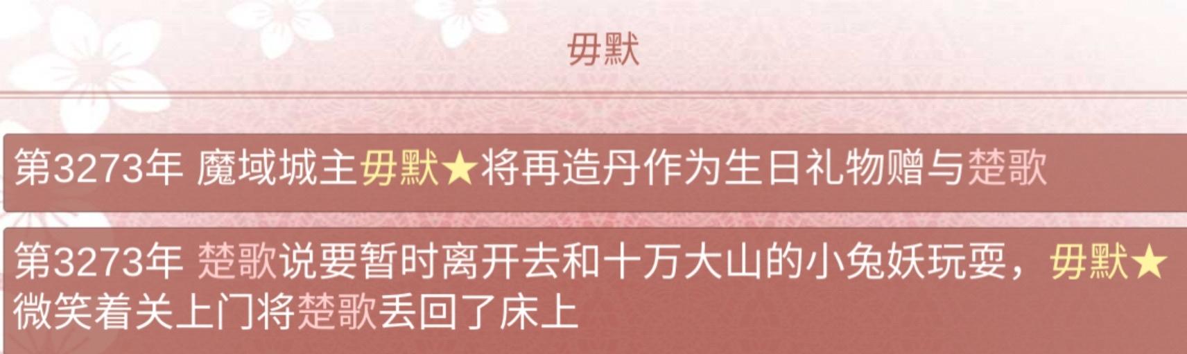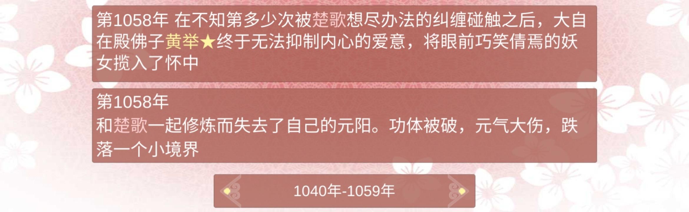 3894年 期间陷入过幻境,也解过情毒(发现掉了境界赶紧喂药提了回去,怕他被攻略之后掉死了)
