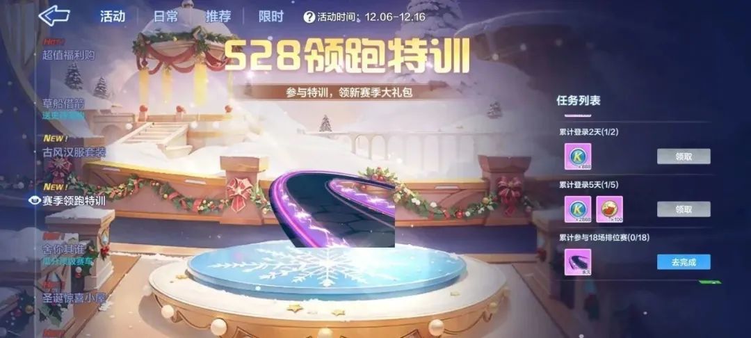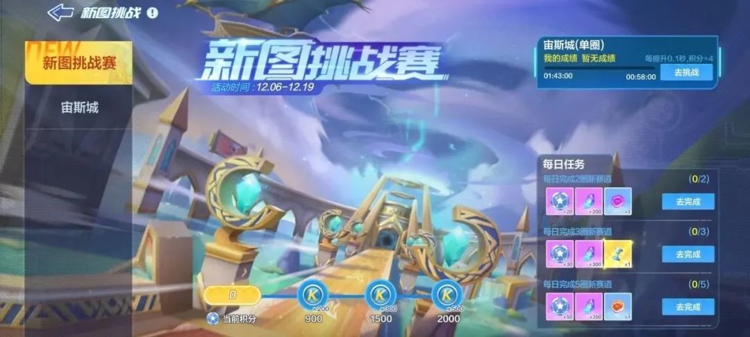 12月6日-12月16日还将开启新图挑战赛,车友们完成新图挑战,即可获得奖励和积分。奖励包括时间沙漏、紫色幸运币和橙色幸运币,其中积分可用于兑换酷币。