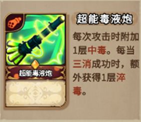 【超能毒液炮】:每次攻击时附加1层中毒。每当三消成功时,额外获得1层淬毒。