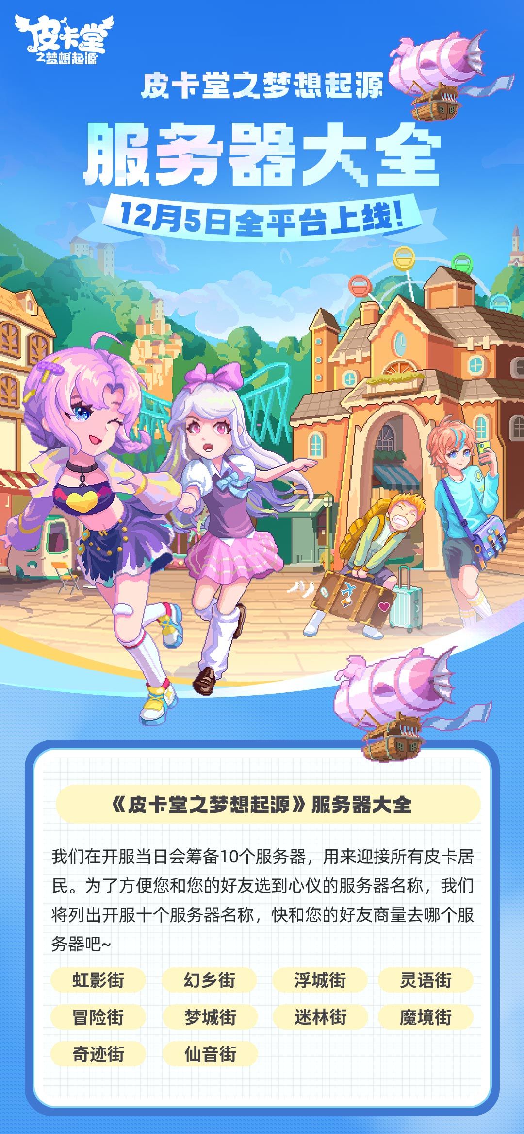 我们在开服当日会筹备10个服务器,用来迎接所有皮卡居民。