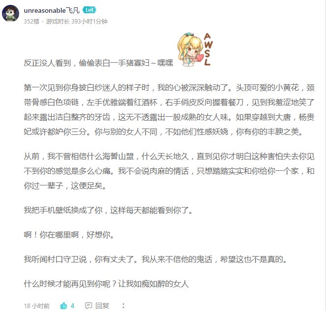 ※在所有的告白中小红帽最不能忘怀的是352楼卡牌大师的告白,除了瑞斯拜无话可说: