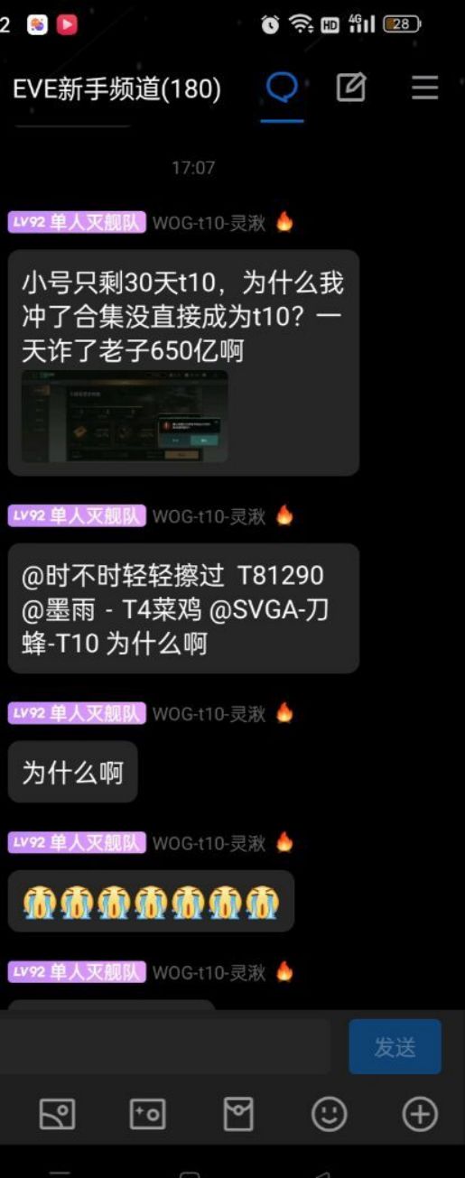 一些尚未T10的飞行员非常关注这类活动,比如上周秒睡的“灵湫”,他就轻信了自家军团成员所说的“充月卡送技能点”。