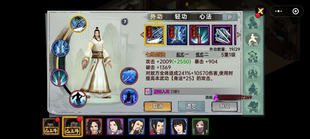 玩了有半个月了吧。运气还好存够第一个998刷几次就出了夜渊。以前不会玩认为红的还是越多越好。到后面升武功一次10几万的历练一个红都难养。刷了这么久的图我发现剑武真的难出。刀和棍最好出了。。。。。首先功法不能乱用随便刷个连招就行,武功能不能连看招式上的数字,后面和前面数字一样才能连。刷出群攻先用群攻。然后升级武功,同类武功学了以后不用了也加攻击不浪费。他们说武功不管颜色伤害都一样。我证明这是骗人的。我橙色群伤2w加。蓝群才1万加。差多了。我是刷不出群红。。还有就是百战峰(30级开吧。在押镖最右边每五层必出蓝武,每10层出粉武)。桃花坞每天必刷首领报粉 橙 ,红色我没有刷出来运气背。打过了还可以重复刷。秘境不能重复刷。都是每天只能刷一次。可以去商城买钥匙。。。其他的就是肝了