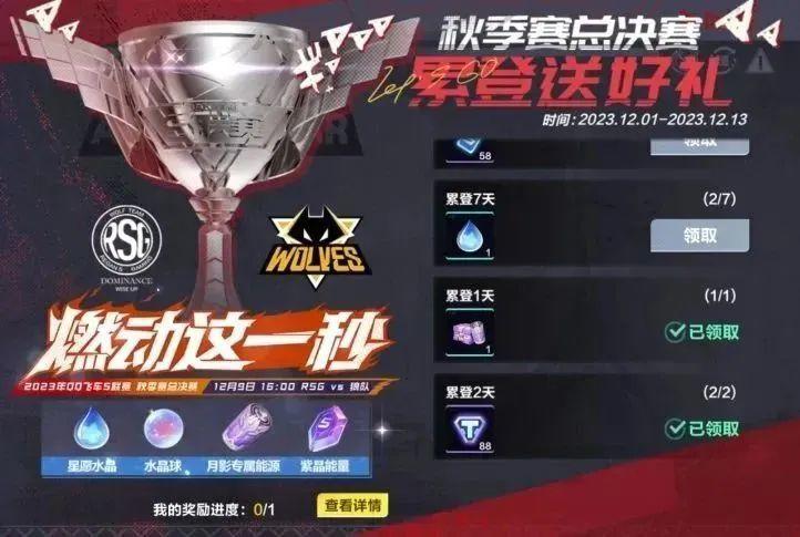 12月9日,2023年QQ飞车手游S联赛秋季赛总决赛RSG vs 狼队巅峰对决即将热血开战!周年庆狂欢月启动暨迎接秋季赛总决赛,小橘子为车手们送福利啦!即日起-12月13日,车手们累计登录游戏并达到指定天数即可领取月影专属能源、星愿水晶、水晶球等惊喜好礼!