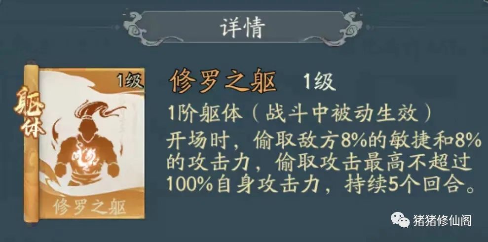 哈喽道友们,猪猪今天给大家带来金色躯体神通——修罗之躯的讲解!在我们冒险通关、推图升天的过程中,各种妖兽战力都是超规模的,我们甚至要打败超越本身战力好几亿的妖兽,除了我们推图使用的流派以外,更重要的是神通的搭配!而修罗之躯就是我们越战胜利的关键,利用偷取对方攻击力的特点,突破战力越级的限制,下面我们一起来看看吧!点击最后阅读原文查看活动更新预告哦~明天讲解新活动玩法!