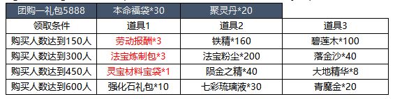 【活动简介】活动期间内,道友们可购买活动界面的团购商品。当购买团购商品的人数达到一定数量时,购买过该商品的道友们可以额外领取相应奖励。