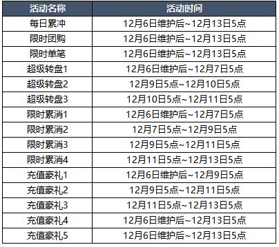 【活动时间】12月6日维护后~12月9日5点