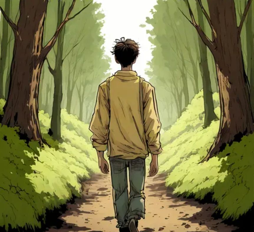 到了第二天你艰难的起身,虽说有枕头但石头床可不舒服。你知道你必须要找到一个栖息地,起码要找到一个人类,不能在这里停留了。收起篝火的余碳后便走出了山洞,认清来时的方向后朝着相反的方向麻木的向前方走去,周围惨绿的树林依旧惨绿。