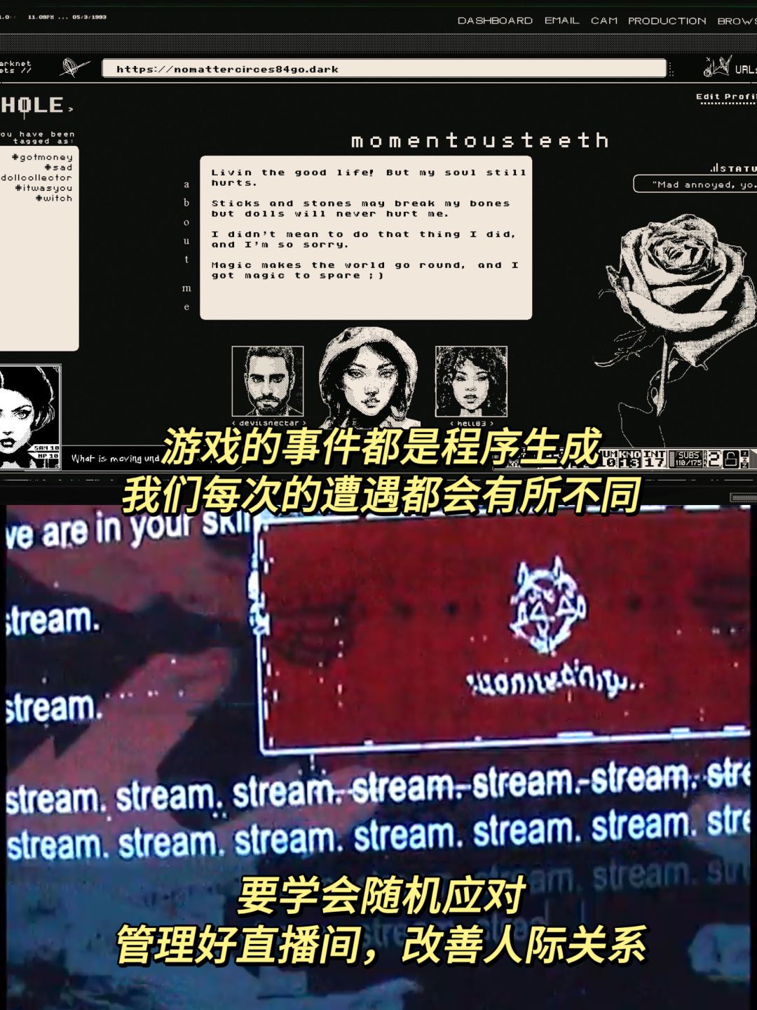 同时还要维持好直播间的氛围,小心不要激怒暗网里的人物,结交奇怪的朋友,不管他在屏幕后面究竟是人是鬼。
