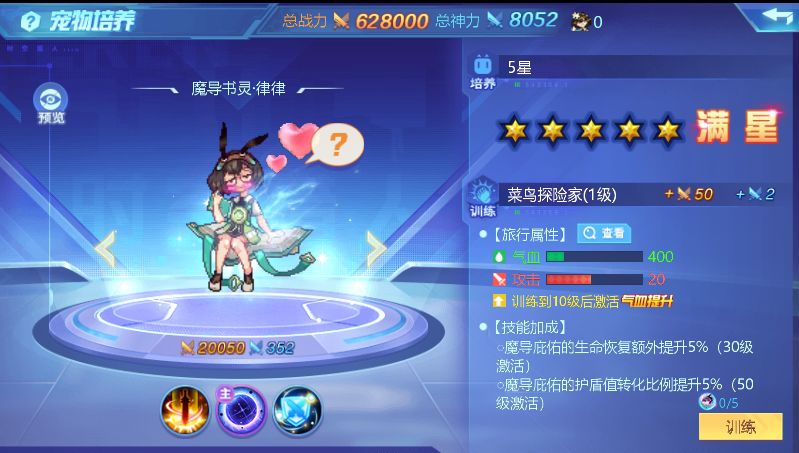 4、通过宠物旅行玩法获取律律宝珠,使用宝珠对魔导书灵·律律进行训练培养,能够获得额外战力加成、技能加成,达成训练任务还能领取律律专属聊天头像等奖励!