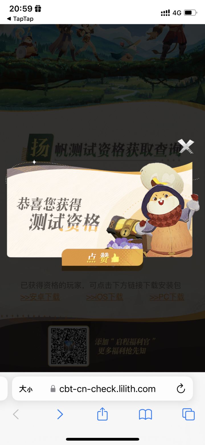 有测试资格,有短信提示
