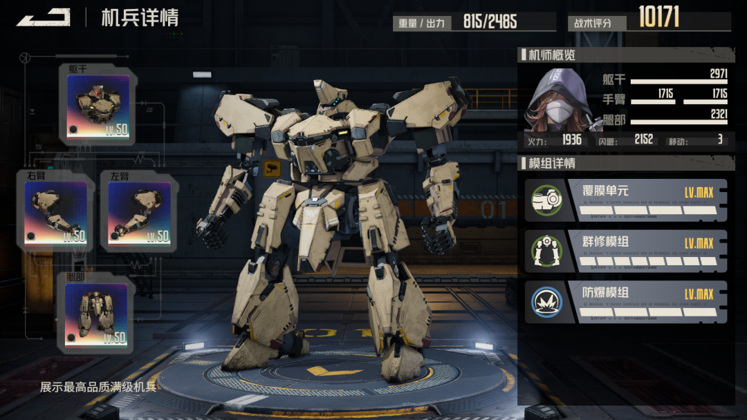 最后最适配梅利莎的机兵维一认为还得是S级的朝阳或开拓者,走鹃吧可以作为一个过渡,但从机兵的适配性来讲绝非是最终选择,此外在机兵的自选模组上,梅利莎可以优先选择“强效整备仪”、“协调模块”等模组,大家参考即可。