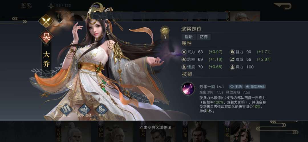 关羽(蜀 5统御)+大乔(吴 3统御)+甄宓(魏 4统御)+华佗(群 4统御)