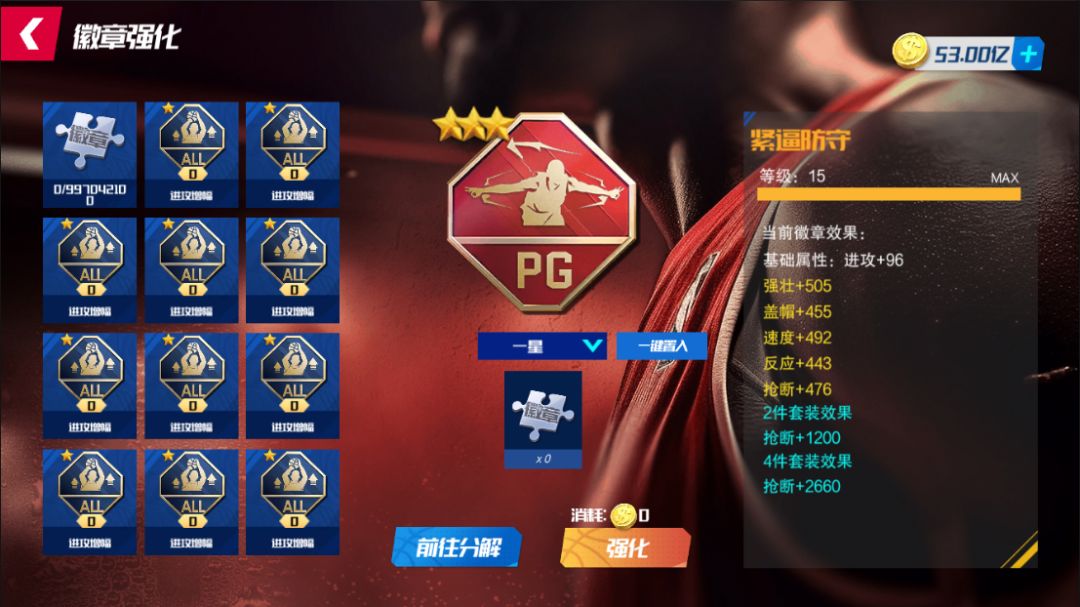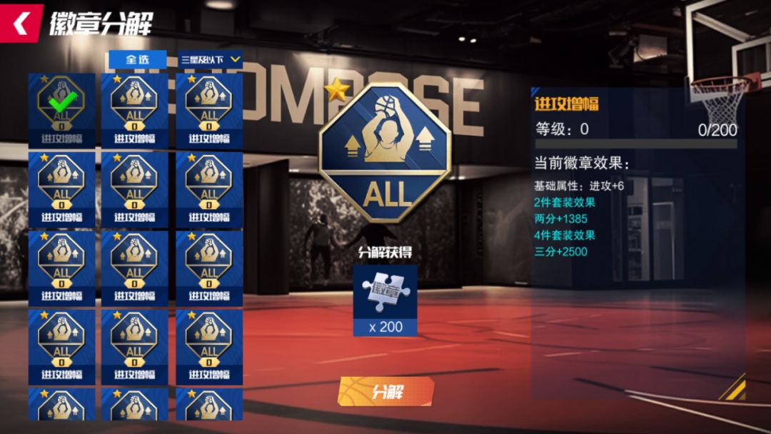 其次是徽章经验值,不同星级的徽章对应不同的徽章经验值。一星徽章对应200徽章经验值,二星徽章对应400徽章经验值,三星徽章对应600徽章经验值。徽章的升级和分解都与徽章经验值密切相关。徽章的等级提升需要消耗一定的徽章经验值,每升一级,基础属性都有相应加成,而每升三级,你将解锁一个随机词条。这意味着随着徽章的等级提升,你的球员将获得更多的属性加成和能力提升。