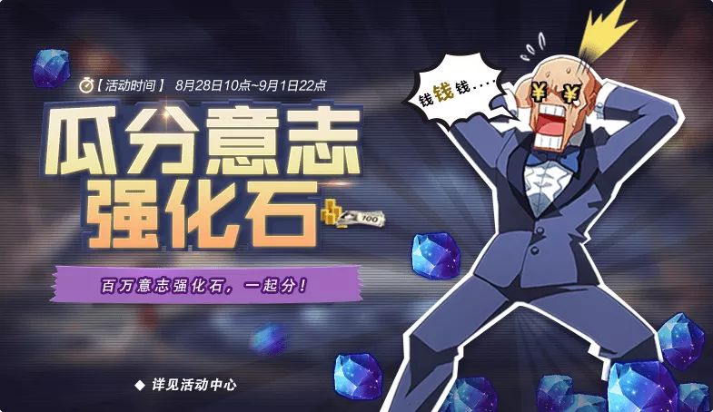 活动期间,充值6元立即获得3个意志强化石,同时获赠奖池瓜分资格,最终奖励=奖池额度/热度,活动结束后将通过邮件发送奖励。