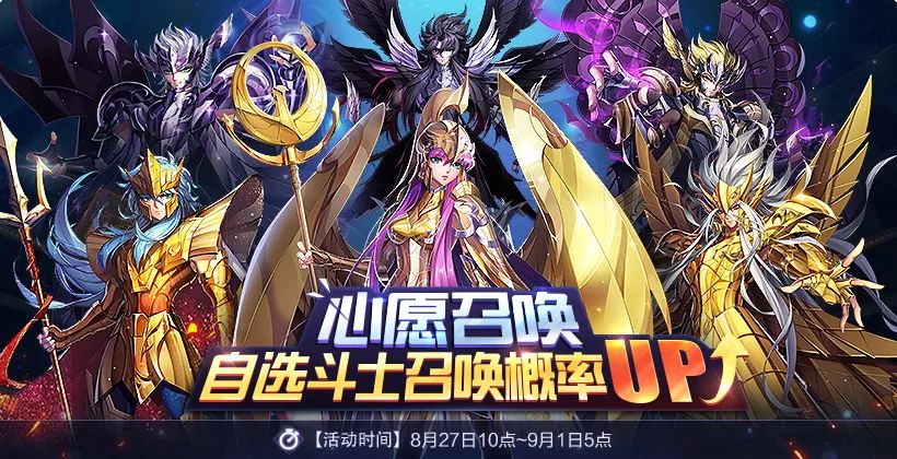 活动开始,选择心愿斗士(阿赖耶识沙加、冥王瞬、邪恶撒加、双子座加隆不包含在内),心愿斗士被召唤成功的概率限时UP(斗士可以随时切换的呦),在召唤过程中百分百掉落心愿石,消耗心愿石可在活动界面兑换指定斗士碎片。