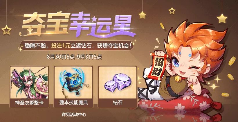 活动期间,每投注1元立即获得10钻石,同时获得1次夺宝资格,多次投注可获得多次夺宝资格。
