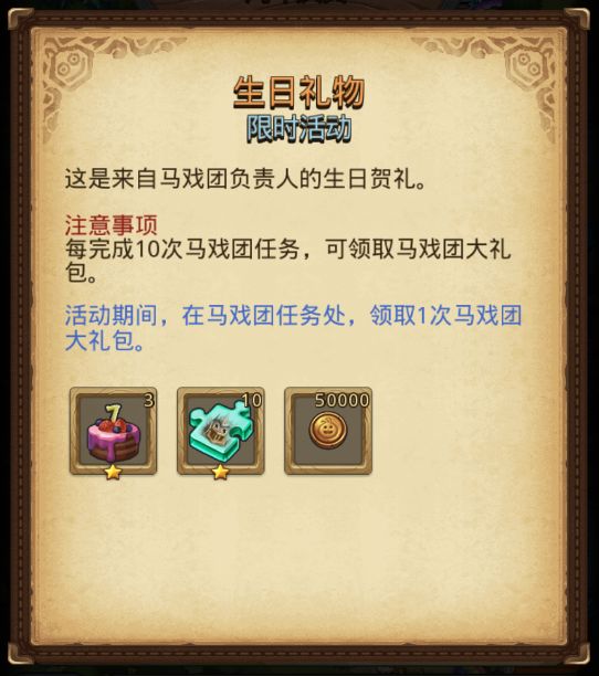 即可在马戏团任务处领取马戏团大礼包