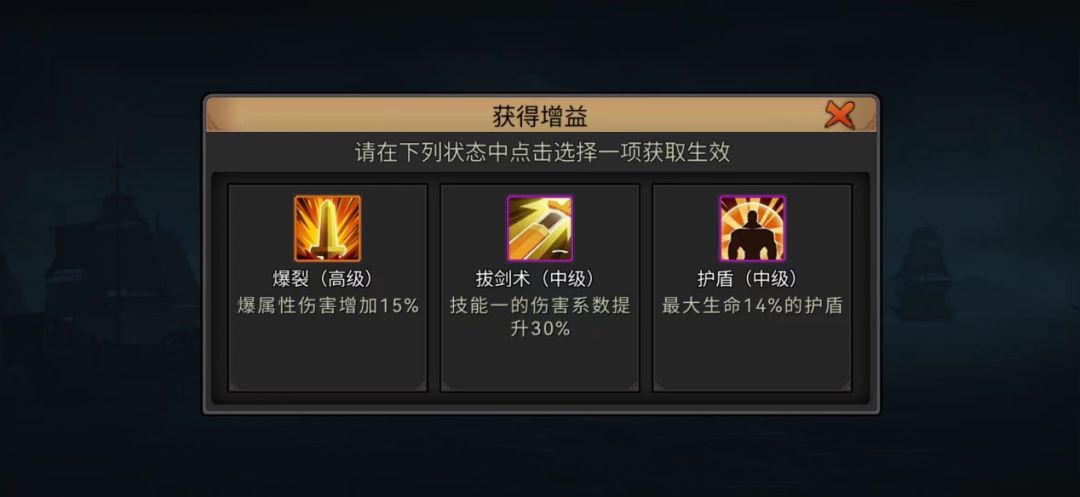 除了固定的获得增益选择外,事件中有时也会开出获得增益的选项。建议优先考虑高等级增益效果,当然如果增益中有提升属性伤害的,比如冰属性,而我们没有使用冰属性技能的武将,那么选择这个增益就无法发挥它的效果。所以选择等级高且实用的增益更加明智。推荐不考虑等级的情况下,首选攻击、暴击、暴伤等,其次蓝量、怒气、减伤等,最后在考虑速度类增益。