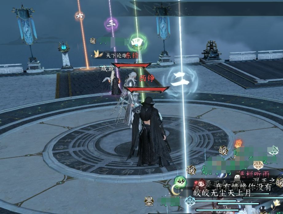 消完锁每个人脚下还有光圈,淡淡的,分两个颜色:金色和白色,也会有系统提示,不要攻击某一个BOSS;金色打白色BOSS,白色打黑色BOSS,每个人脚下都有,2号点是白色BOSS,3号点一侧是黑色BOSS,需要灵活转场,不然会被反死。