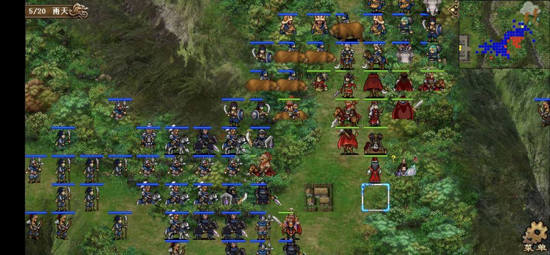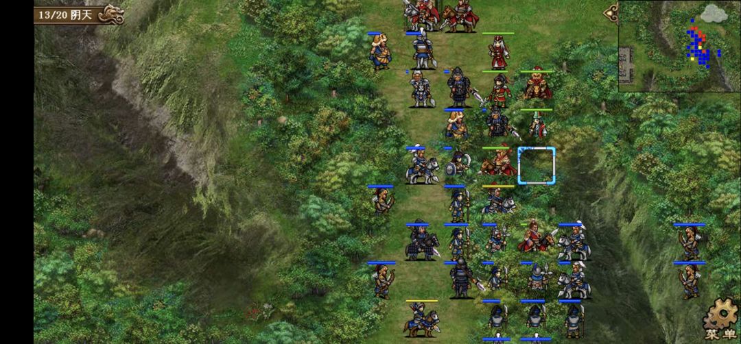 这个阵型不错,保持几回合,杀几个弓箭手枪兵就安全了。其他就没啥好说的,贴图略过。