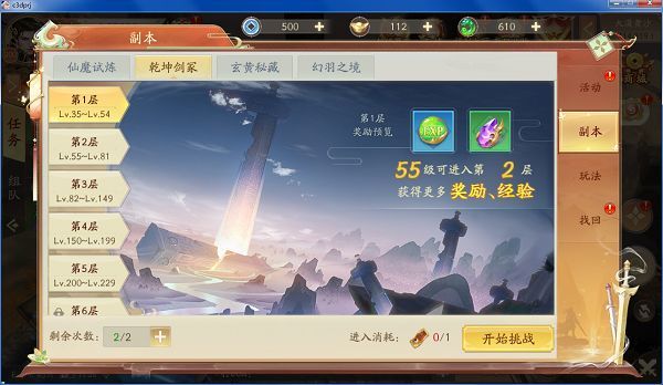 乾坤剑冢,是各大名剑神器的埋身之地,也是修仙者历练之地。剑冢中埋藏着众多神器的秘密,只要获得其一,就有晋升神器的机缘!修仙者们纷至沓来,然而却被凛冽的剑气和剑冢的守护者们阻挡在外。只有强大的力量,才可以突破重重困难,探寻剑冢的秘密!42级开启乾坤剑冢,进入消耗乾坤剑冢门票,门票不足可以通过仙玉商城购买或合成,每天有两次免费挑战次数,次数不足可以通过钻石购买更多次数,挑战时间越短,评分越高,经验越多,并且获得大量强化石(用于装备进化),是装备升级、战力突破的重要途径!