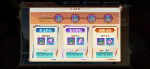 当然帮派捐献并不是单方面的需要帮派成员付出贡献,在捐助贡献的同时还可以获得对应的福利报酬。帮主可以根据当前拥有的帮派资金建设各种帮派建筑,以此来提供帮派成员的福利水平,并且解锁更多的帮派活动。