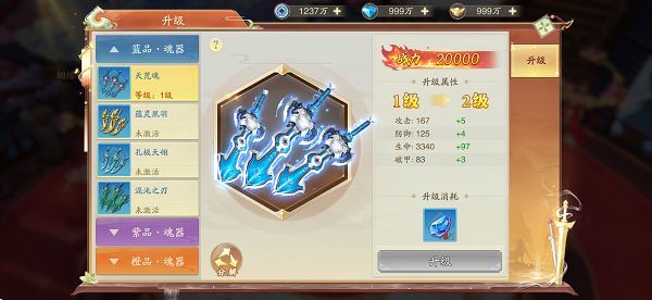 战玲珑2魂器系统也是玩家重要的战力组成来源之一,魂器根据品质分为多个种类,每个魂器都可以独立培养。每个魂器的激活条件不同,可通过道具激活或前置魂器等级激活。消耗魂器培养道具可以进行魂器升级,每个种类可用的培养道具不同。魂器激活道具和培养道具可在魂器副本内获得。多余的魂器激活道具可以分解为对应的培养材料。