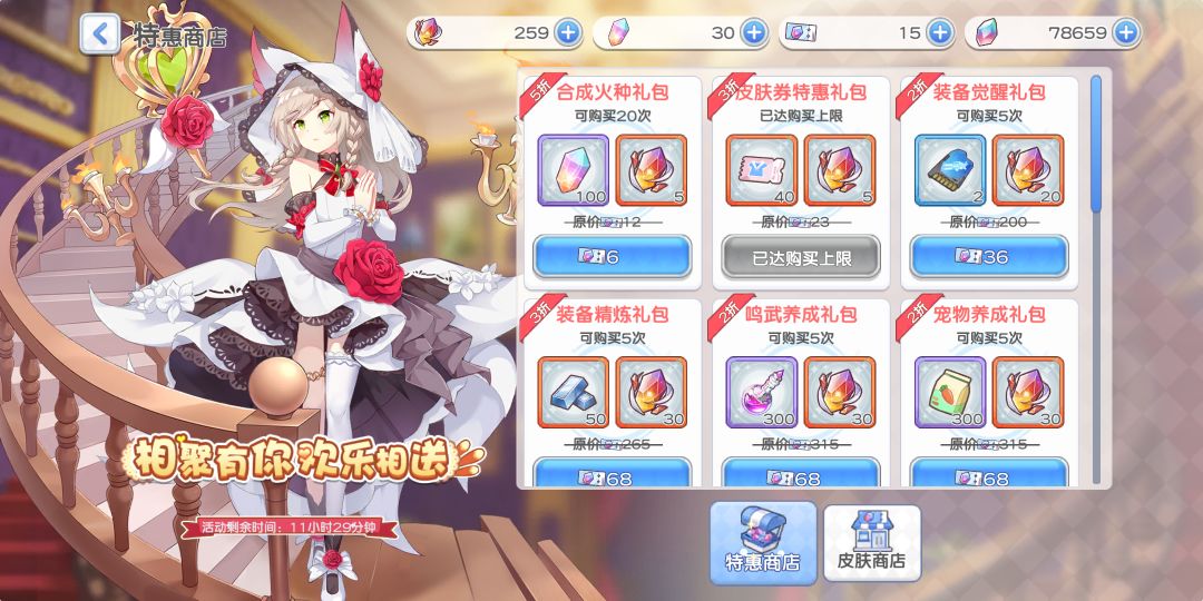 特别注意:月卡+周卡党在特惠商店中买光皮肤券礼包,18点券可以获得120张,再配合主界面的商店“礼包补给”中皮肤券大礼包,18点券再换80张皮肤券,就可以等无瑕上线时直接买活动皮肤。
