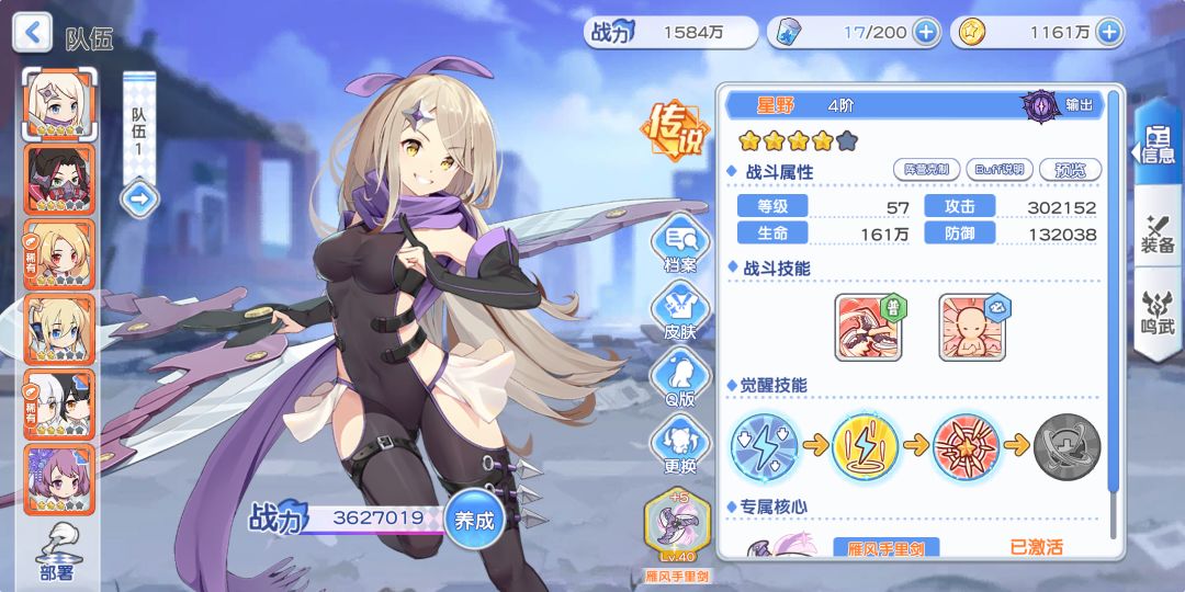 战力:1584万,指挥官等级:57级(留了15瓶体力药水),屯钻:78659,主线:56-3(已完成新人任务所以没有再推),无限回廊:496(未完成新人任务)