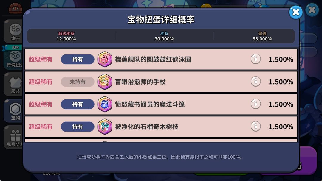 如果上面说的小伙伴们都已经拿到了想要的饼干,就可以考虑兑换宝物扭蛋券。宝物自身都是具有不同属性,战斗佩戴宝物可以提升队伍额外属性,增强战斗力,大幅度提升战斗的胜率。