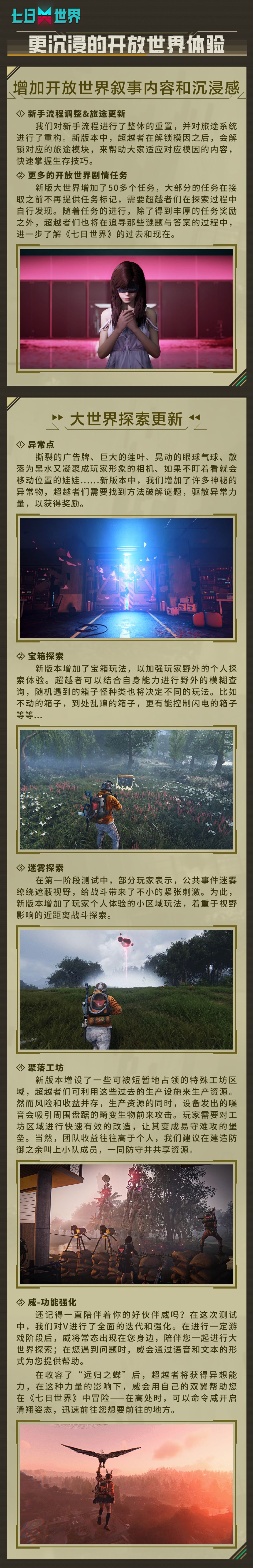 更细腻的美术效果、全新的剧情动画、更真实的体型和建造系统、生存小队移动领地、可被收容饲养的异常物、带你自由滑翔的威、全面更新的赛季玩法.......