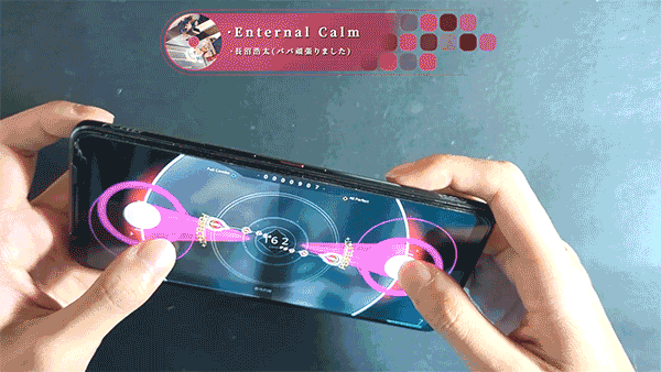 一般音游操作的方式更像是弹琴,需要灵活移动手指去击打不同位置的音符,但是在《旋转音律》中,你甚至可以保持左右手拇指始终在同一个位置,只通过旋转手机的方式去对准音符。