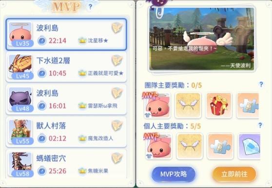 那如果你单纯只是个小白新手,记得每天五只MVP摸好摸满,弄到了就算死掉了也没关系,躺在地上等BOSS死了之后拿奖励就行。