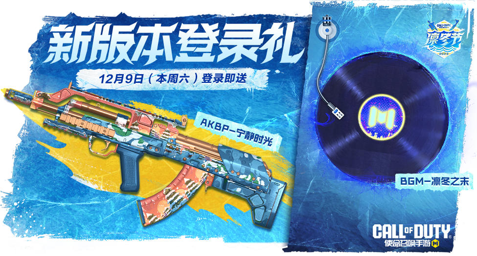 12月6日,新版本登录礼如约而至,战士们前往游戏预约,并于12月9日登录游戏,即可获得稀有级武器:AKBP-宁静时光和BGM-凛冬之末。