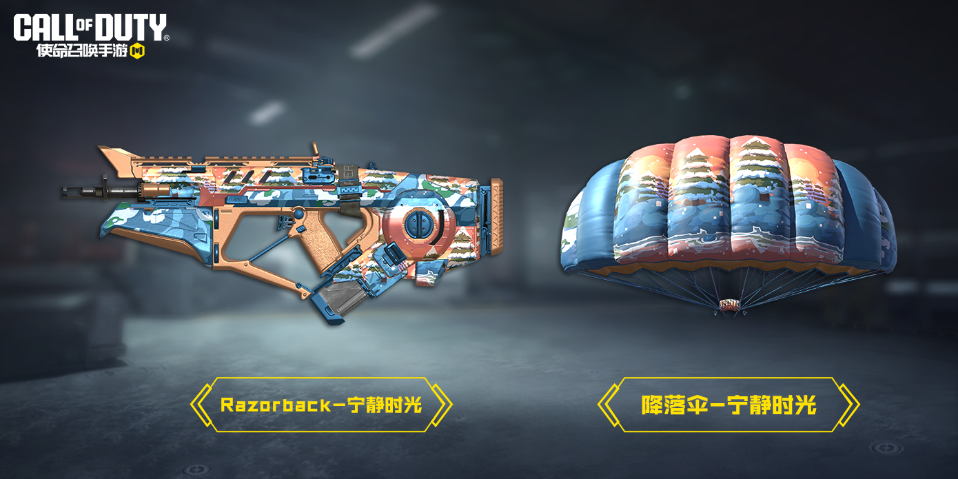 12月11日,轻松对局礼惊喜上线,战士们参与游戏任意对局,就能获得稀有级武器:Razorback-宁静时光、降落伞-宁静时光等精美奖励哦~